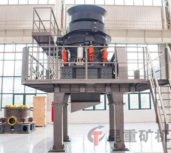 現以市場目前使用較多的底部單缸液壓式圓錐破碎機舉例說明。這種圓錐破的工作原理與彈簧圓錐破碎機相同,但在構造上取締了彈簧圓錐破碎機的調整環、支承環和鎖緊裝置以及球面軸承等零件。該圓錐破的液壓調整裝置和液壓保險裝置,都是通過支承在圓錐破可動錐體的圓錐破主軸的底部的液壓油缸(一個)和油壓系統來實現的。