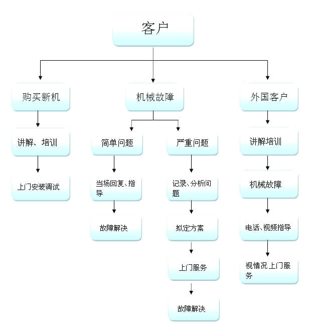 4、服務原則:產(chǎn)品保修期為十二個月,在保修期內供方將免費維修和更換屬質量原因造成的零部件損壞,保修期外零部件的損壞,提供的配件只收成本費,由需方人為因素造成的設備損壞,供方維修或提供的配件均按成本價計。